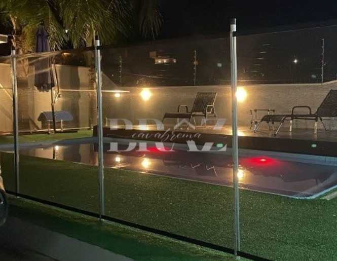 Imóvel excepcional no bairro Imigrante Norte em Campo Bom, com 150m² de área construída, 3 quartos (1 suíte), cozinha americana, sala de jantar, sala de estar com lareira, lavanderia e banheiro social. Acabamento em gesso e porcelanato. Pátio com piscina, deck com controle remoto, gramado sintético, quiosque com armários sob medida e churrasqueira. Garagem para 2 carros, portões eletrônicos, pergolado e cerca elétrica. Inclui ar condicionado e móveis sob medida. Localização privilegiada e ótima exposição solar.