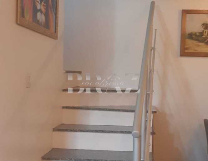 O sobrado possui no térreo sala de estar e jantar integradas, lavabo cozinha, área de serviço separada. No segundo pavimento duas sites sendo uma com sacada. Possui pátio nos fundos murado e pátio na frente com grades. Área construída de 78,95m² e área total de 79,49m². Ficam os móveis da cozinha planejada e os móveis dos banheiros e lavabo.